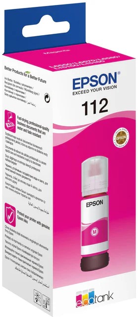 Epson 112 EcoTank Magenta Ink Bottle – 6000 Pages, For Epson L11160,L6550,L15150,L6570,L15160,L15180,L6490,L6580 Printers, Retail Box, No Warranty.